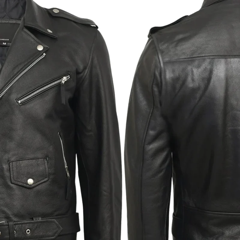 Brando Mens Genuine Leather Biker Jacket Cowhide