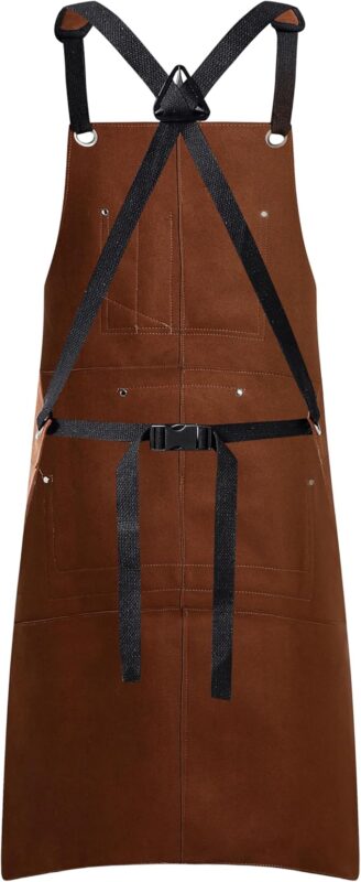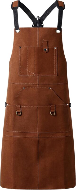 Flame Retardant And Waterproof 6 Pockets Leather Tool Apron for Outdoor Woodwork, Grilling