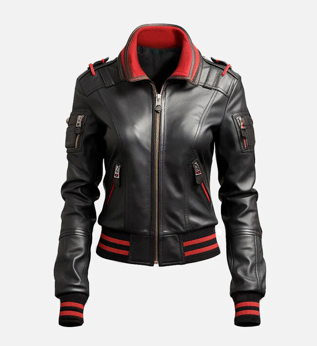 Women’s Black & Red Bomber Leather Jacket