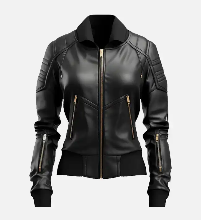 Women’s Black Leather Bomber Jacket