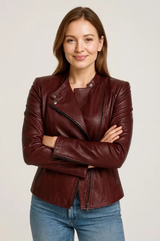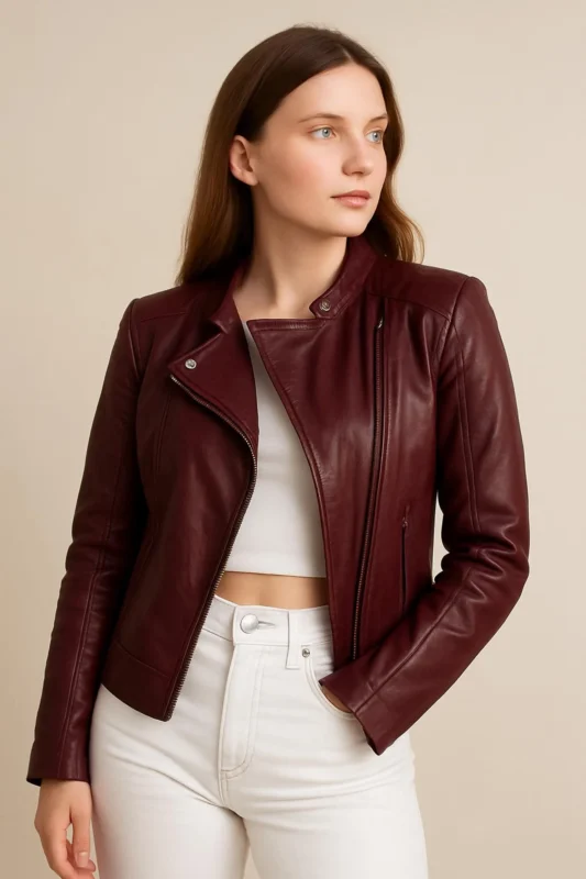 Handmade Maroon Lambskin Leather Biker Jacket: Slim Fit Moto Coat