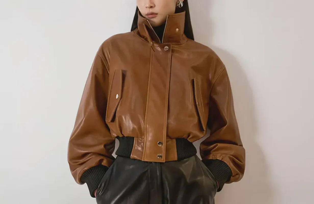 Handmade Women’s Lambskin Leather Crop Bomber Jacket: Vintage Style