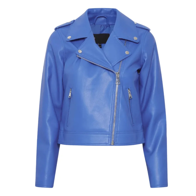 Ladies Real Lambskin Light Blue Moto Jacket