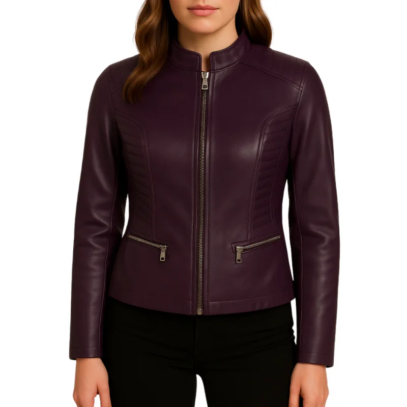 Handmade Maroon Lambskin Leather Biker Jacket: Slim Fit Moto Coat