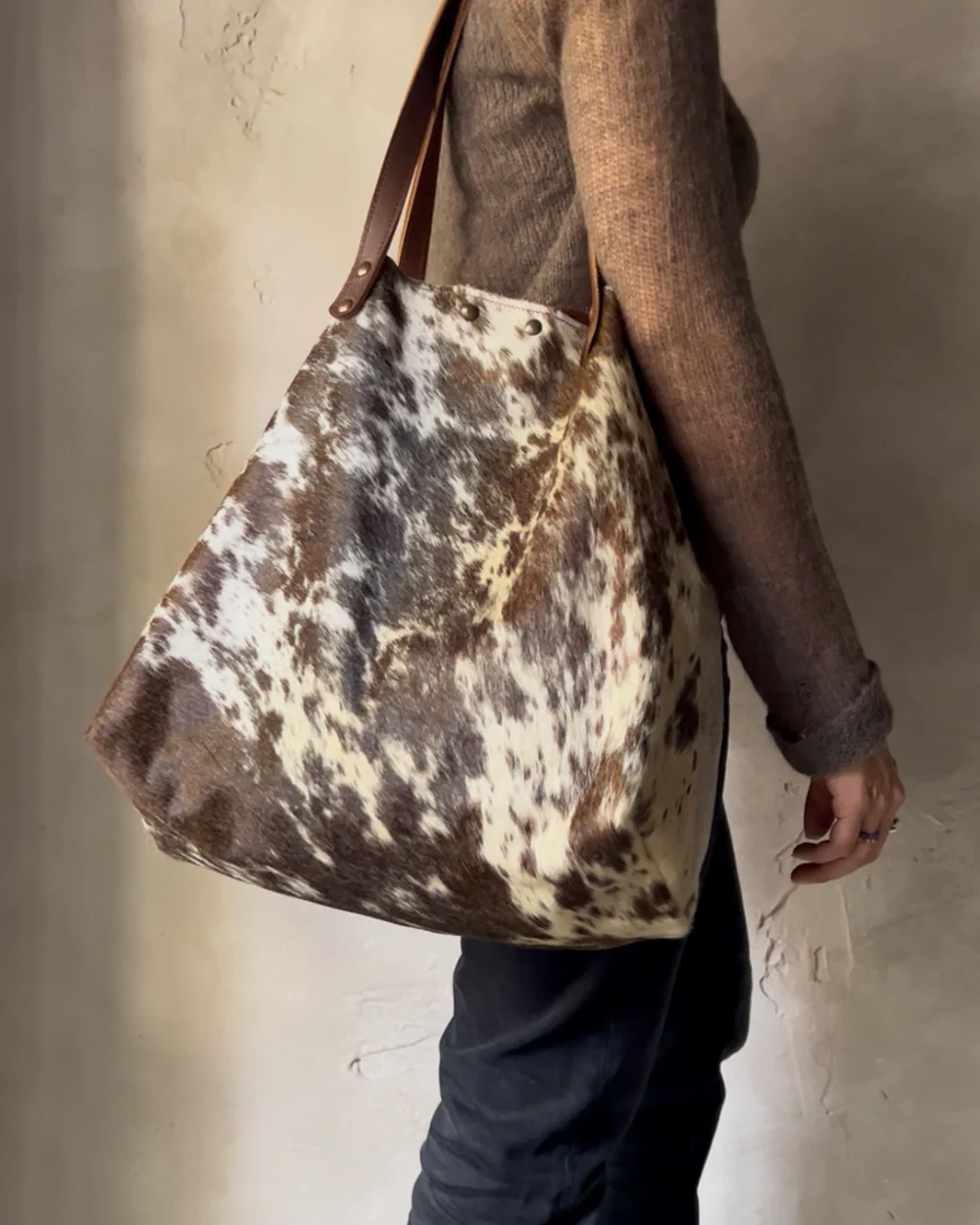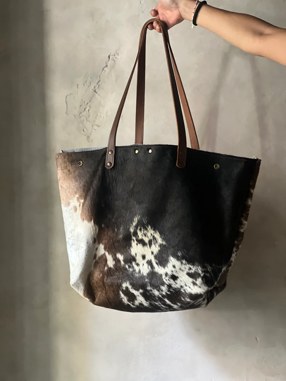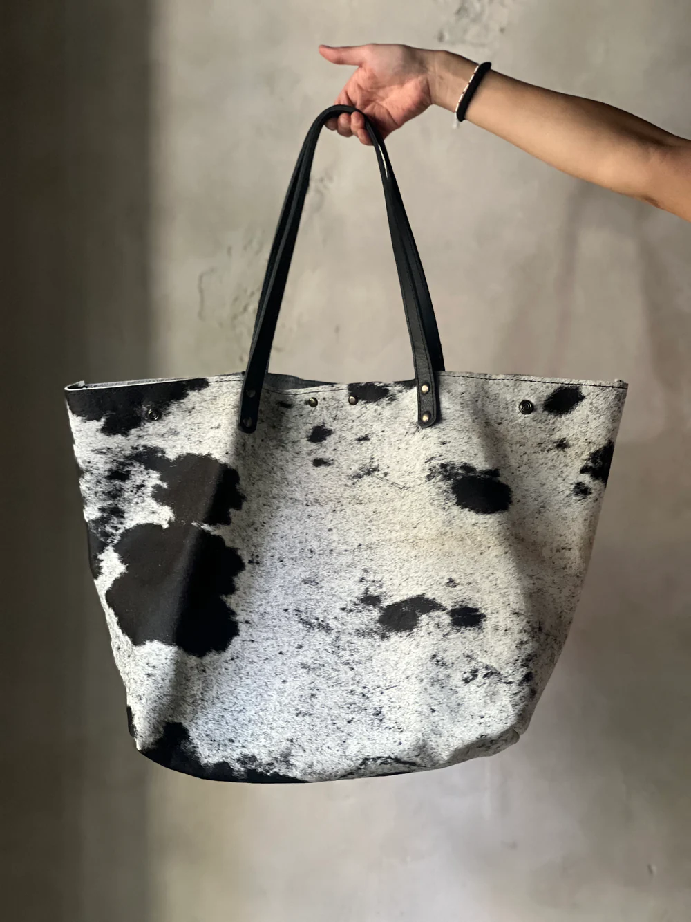 Crafted from genuine cowhide, this bag is truly one of a kind. No two pieces are alike—every mark, pattern, and texture is naturally unique. As this is hair-on hide, variations in spots and tones are to be expected. You may choose between brown-and-white or white-and-black colorways. If you’d like to preview the exact piece we’ll be sending, feel free to email us at hola@veracolectivo.com and we’ll be happy to share photos of the bags currently available.