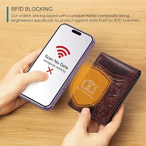 RFID Blocking Wallet: Our leather wallet bifold is equipped with a unique metal composite lining, engineered specifically to protect against data theft by RFID scanners.