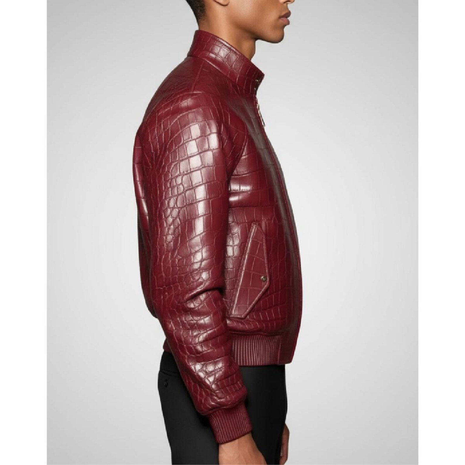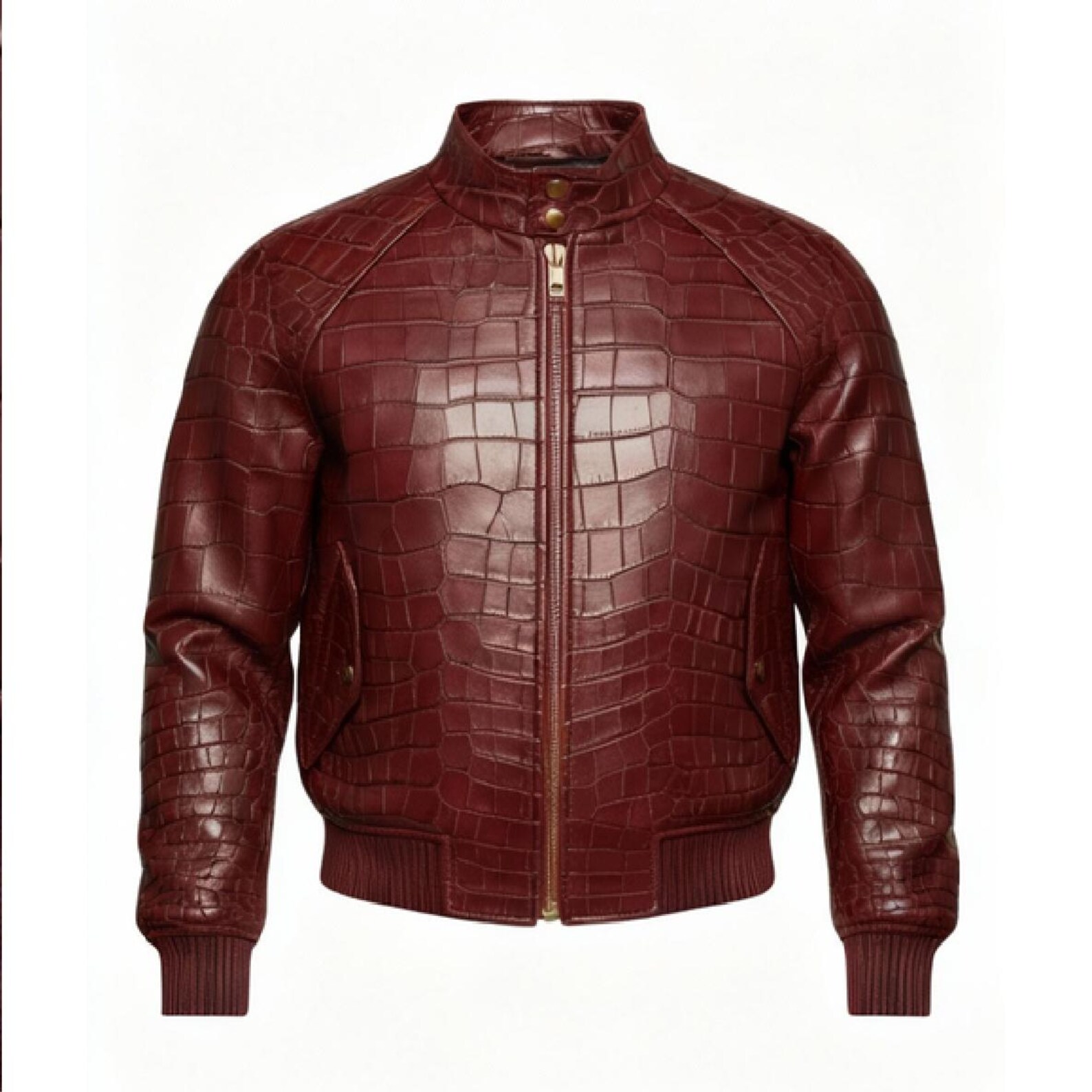 Handcrafted Red Crocodile Bomber Lambskin Jacket – Premium Exotic Style for Men