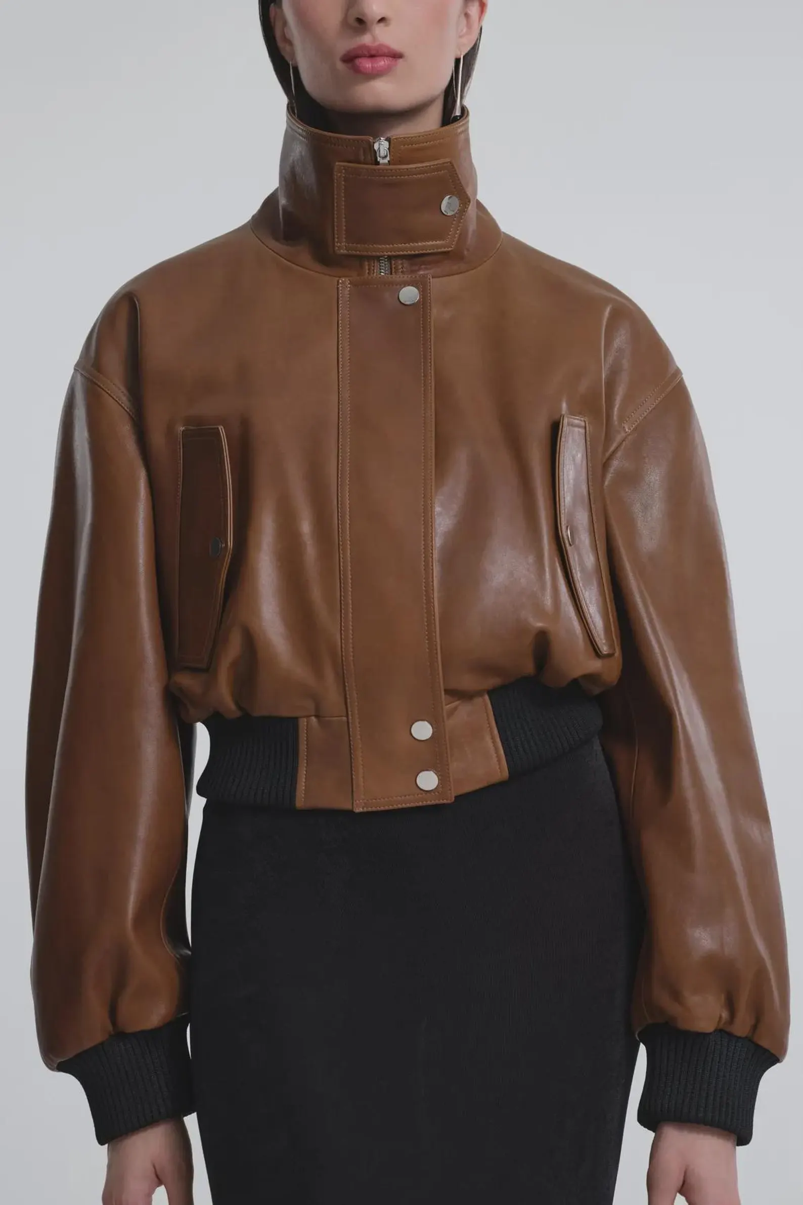 Handmade Women’s Lambskin Leather Crop Bomber Jacket: Vintage Style