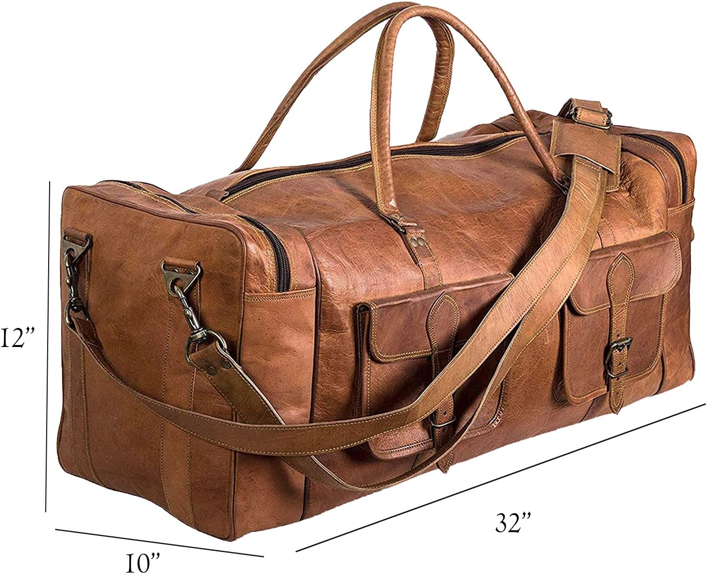 MULTIPURPOSE : With a large size and multiple pockets , This Luggage bag can be used as a leather Travel Bag, Sports bag, Weekend bag, overnight , Camping Bag, Gym, cabin bag.