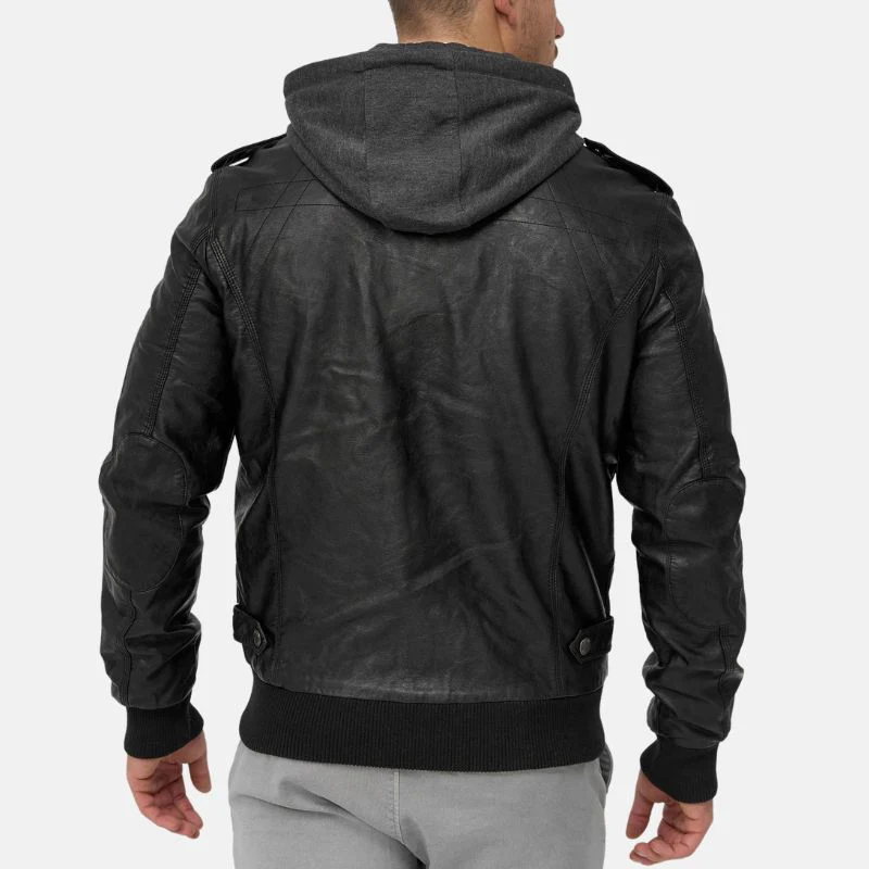 Be the first to review “Mens Black Bomber Leather Jacket With Removable Hood”