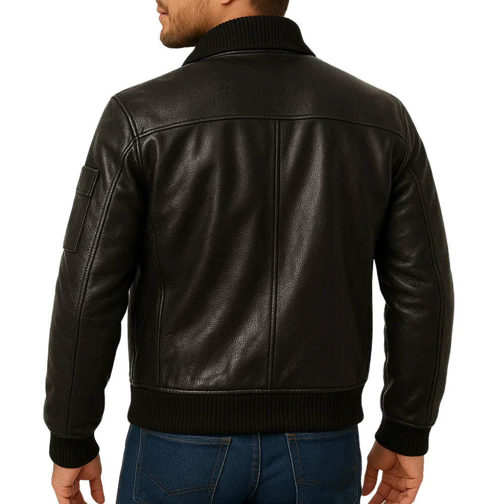 Men’s Black Cowhide Leather Bomber Jacket