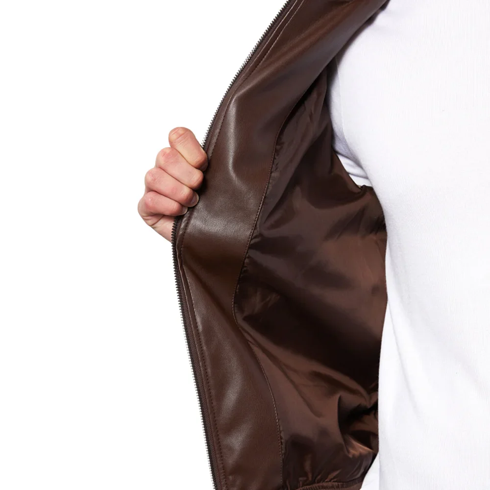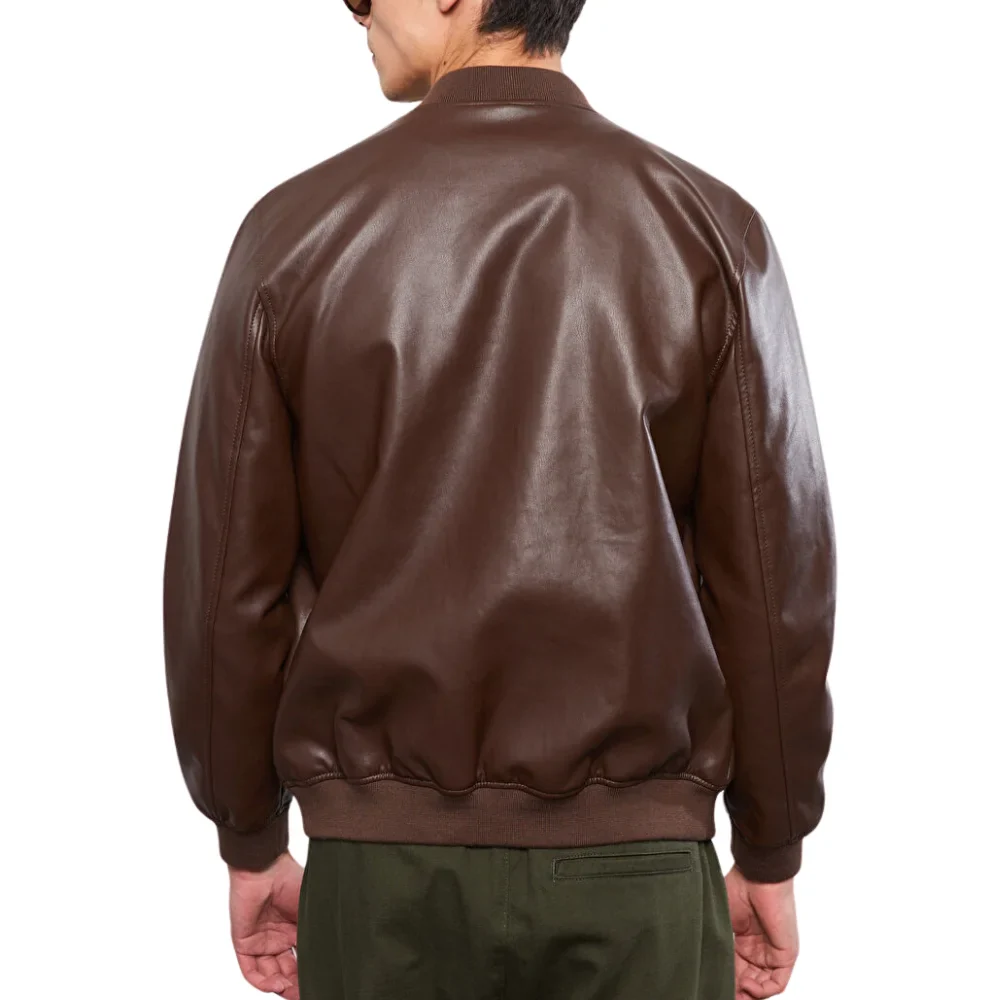 Mens Real Chocolate Brown Leather Bomber Jacket