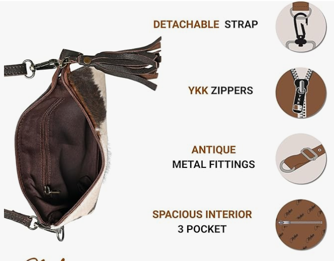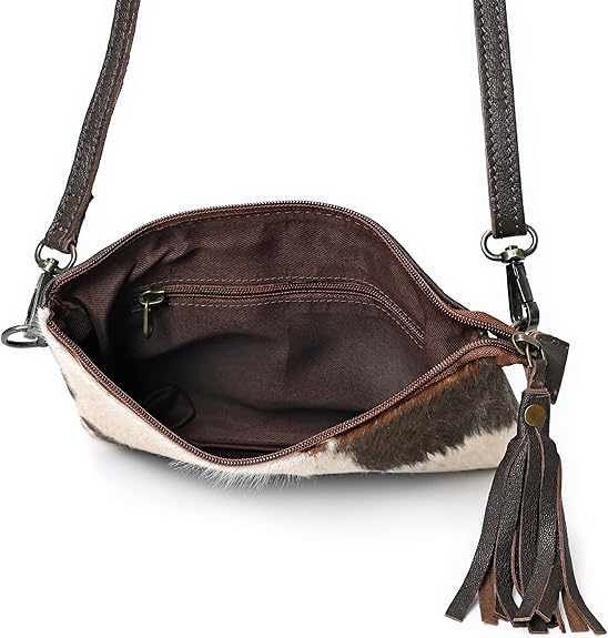 Merbaa cowhide and hair on Pouch bag Genuine cowhide hair on small crossbody Bag with adjustable detachable strap