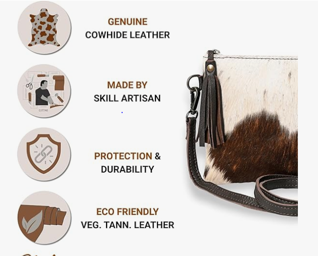 High-Quality Material: Made from Cowhide, full grain shrunken leather known for its durability and natural beauty. Each cowhide pattern is unique, making every bag one-of-a-kind. Distinctive natural patterns and textures add a rustic and unique appeal.