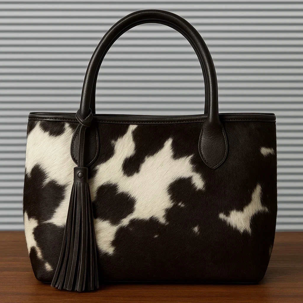 Elevate your everyday style with this stunning Real Hair-On Cowhide Leather Tote Bag, crafted from 100% genuine cowhide for a luxurious and authentic look. Each bag showcases its own unique hide pattern, making every piece one-of-a-kind.