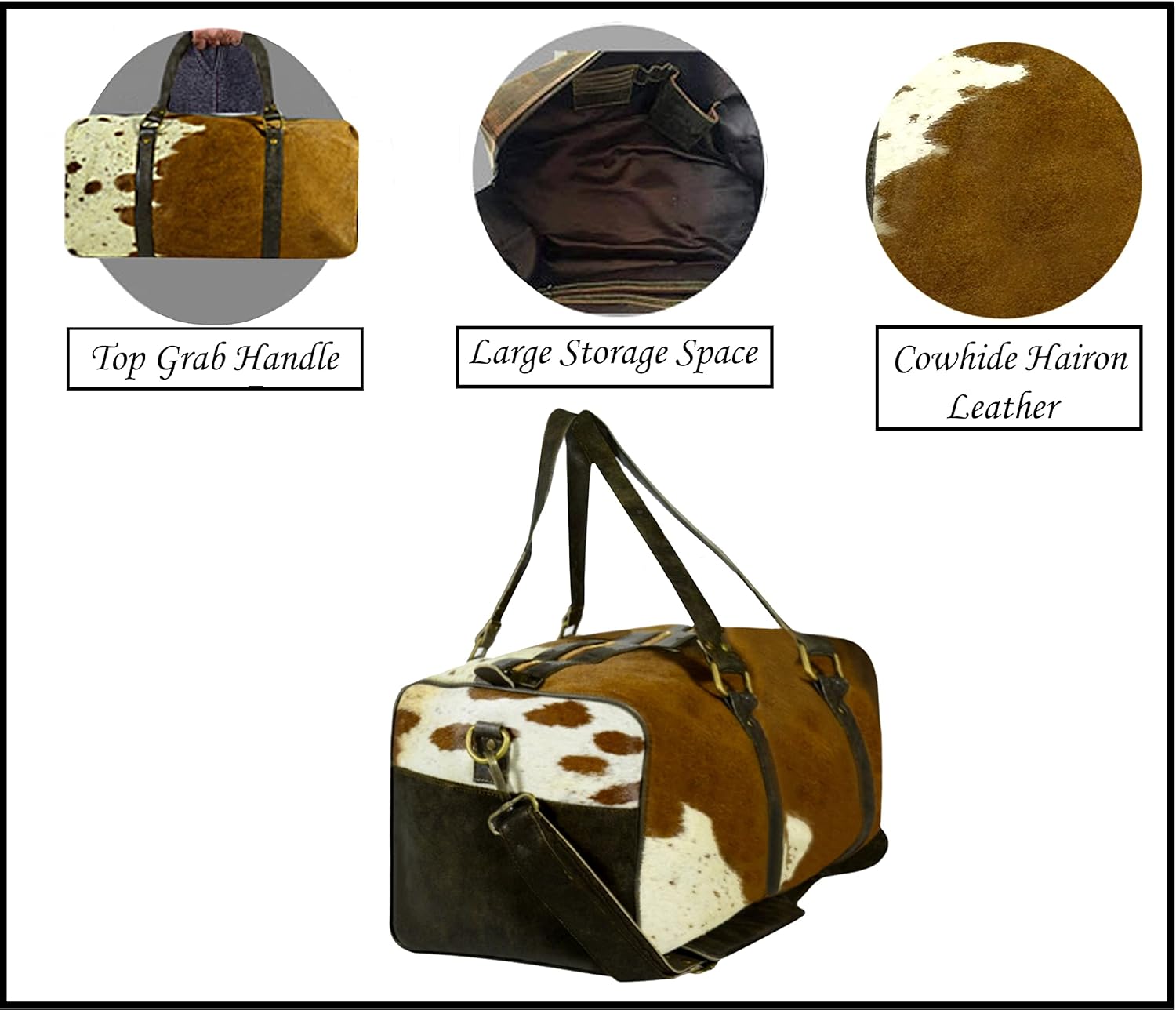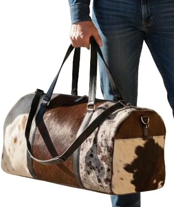 Real Cowhide Leather Duffel Bag Cow skin Hairon Leather Exotic Travel Sports Bag Large Size Gym Bag Overnight Bag Choose your Color (Tricolor)