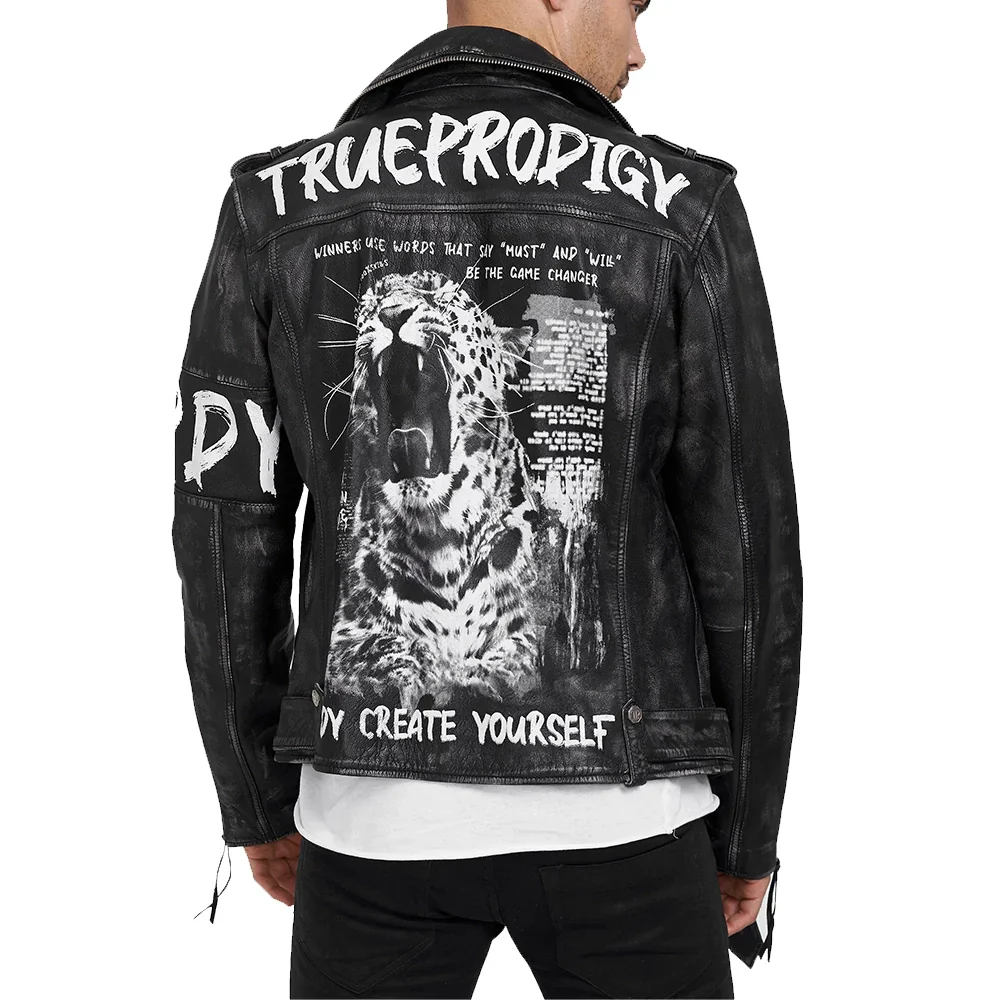 Vintage-Inspired Rugged Black Leather Moto Jacket for Men