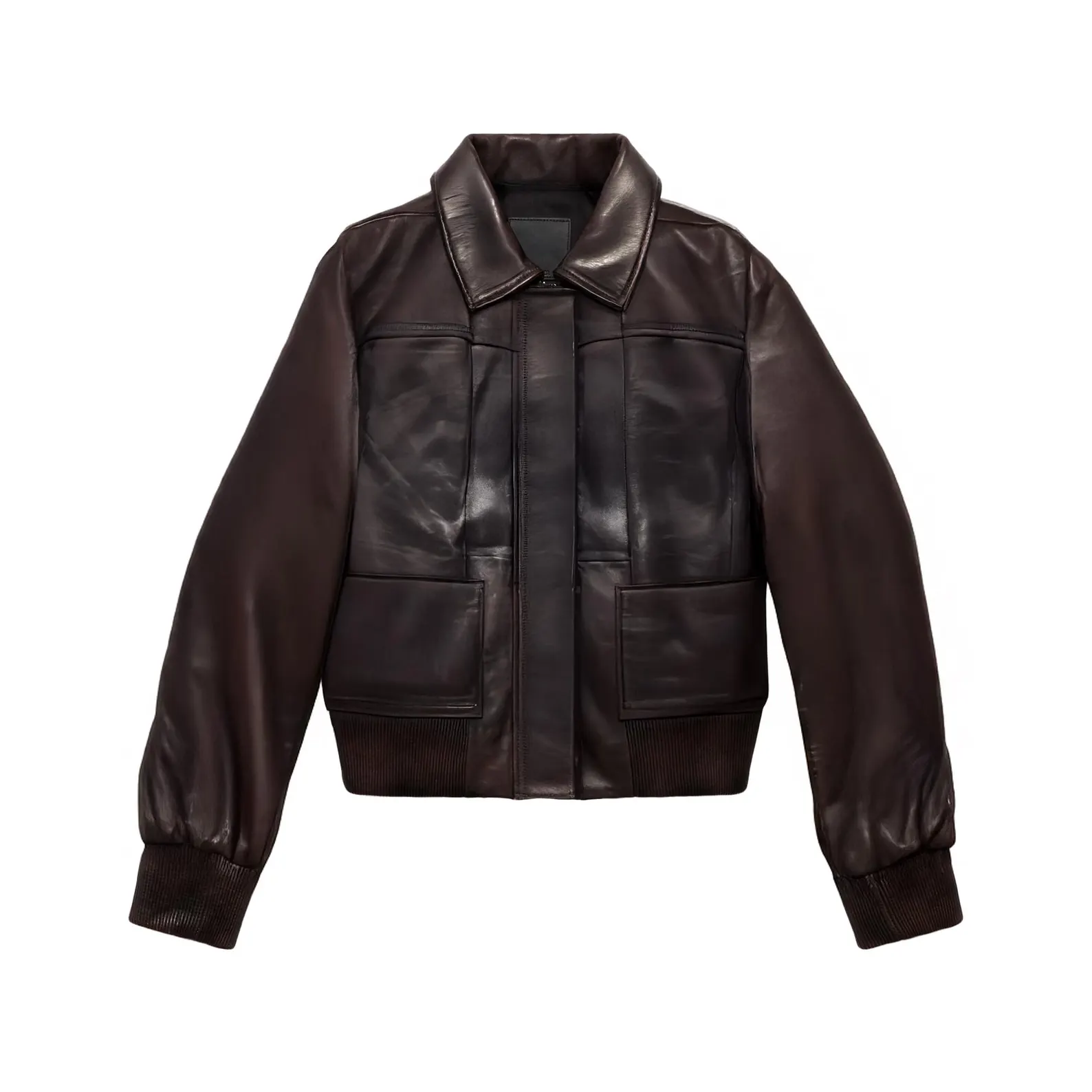 Vintage Style Brown Leather Bomber Jacket – Classic Aviator Outerwear for Women