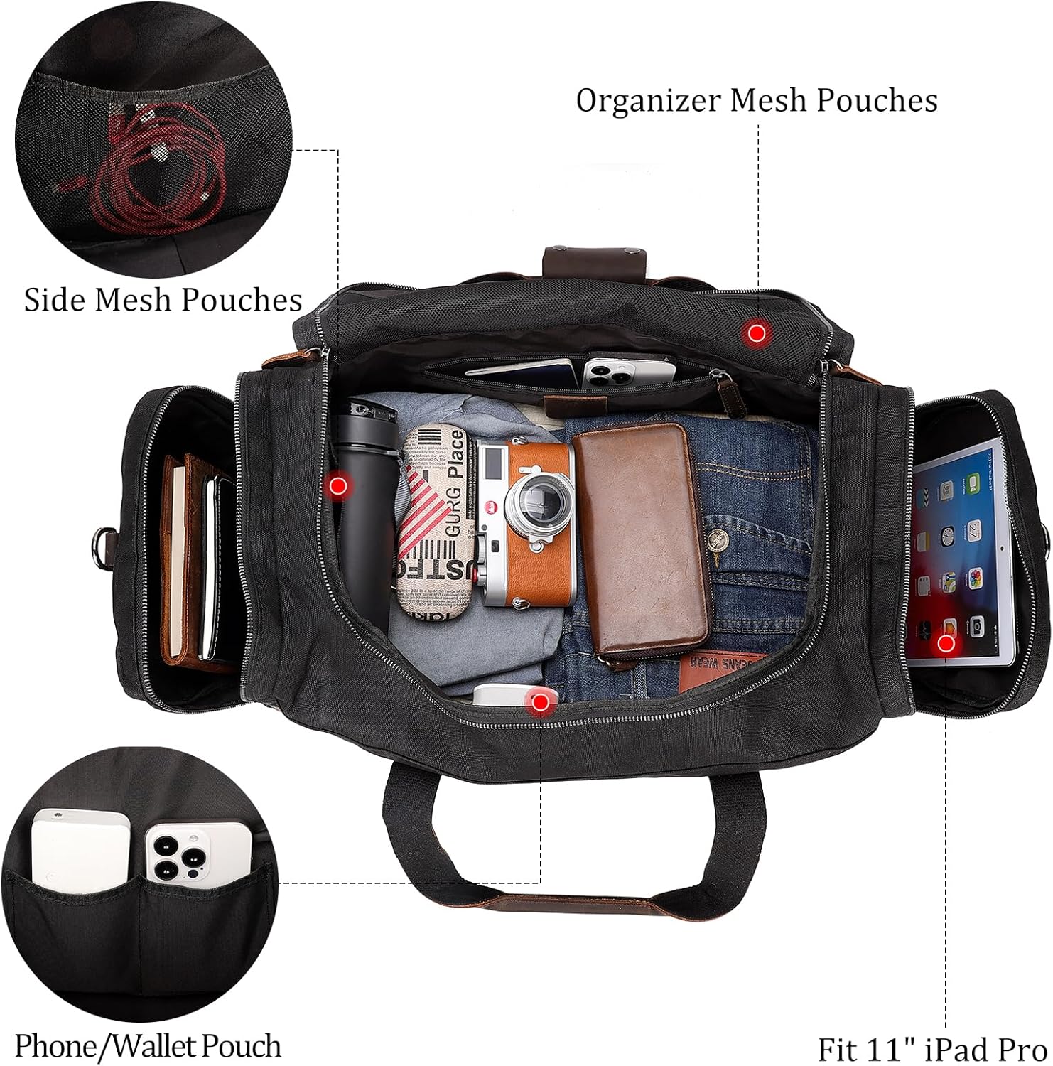 Premium Material: Handcrafted with durable 2mm Italian cowhide leather and waxed waterproof durable canvas that is tear- and rip-resistant. Outfitted with robust customized hardware, premium YKK zippers and bottom rivets, quality solid hardware won’t gather rust easily. The premium quality offers reliable performance that stands up to everyday use, ensured the long lasting durability