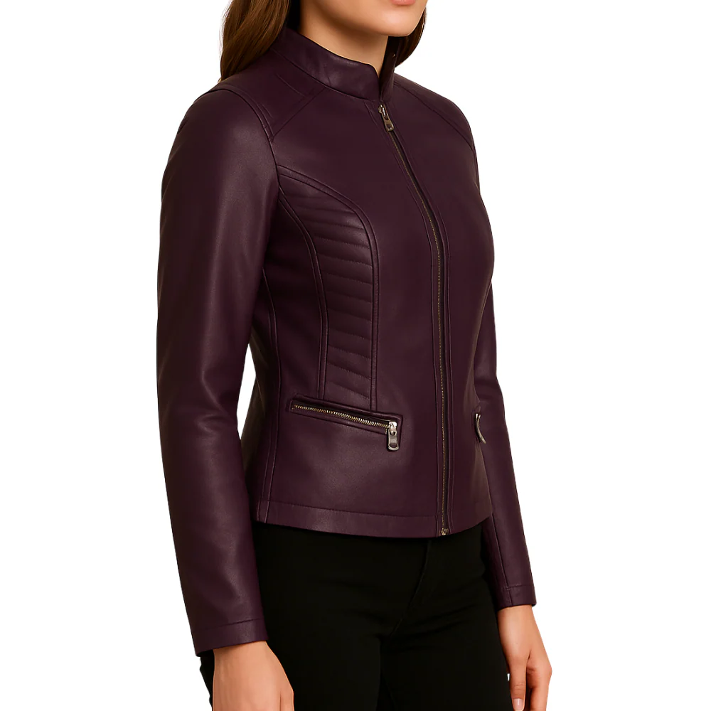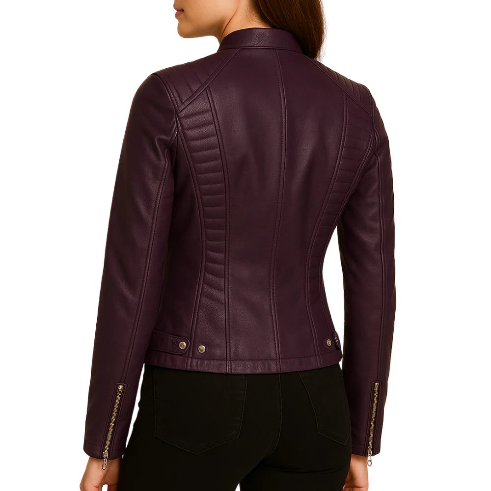 Slim Fit Purple Leather Motorcycle Jacket Women
