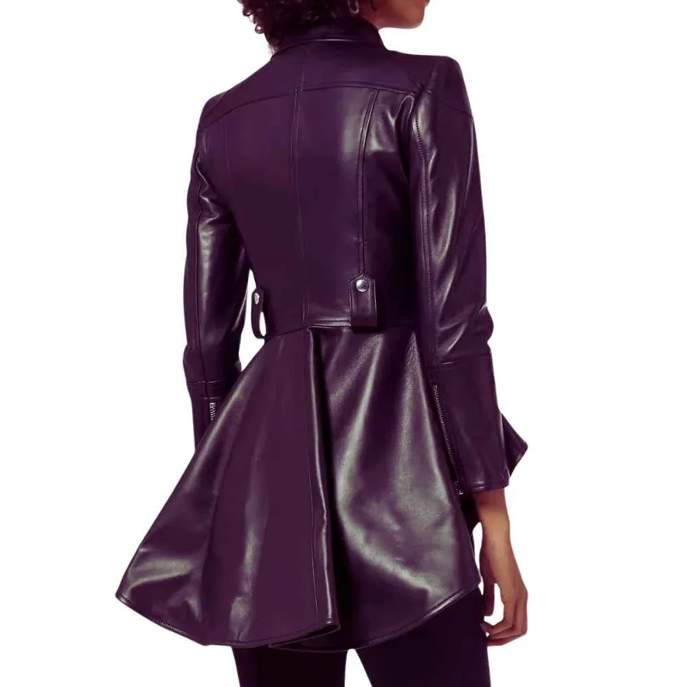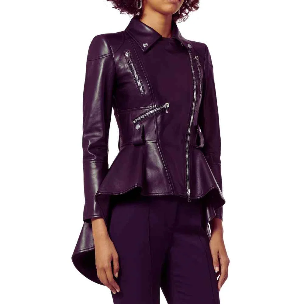 Women’s Asymmetrical Peplum Purple Leather Jacket