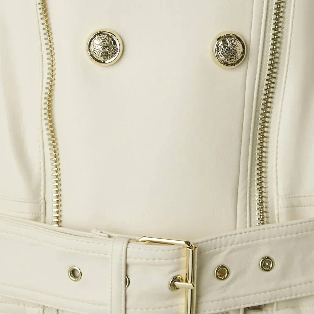 Women’s Double Breasted Dove White Leather Biker Jacket